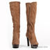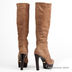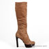 Демисезонные сапоги из нубука на платформе и каблуке. Подошва жесткая, проклеенная, гладкая. Застегиваются на молнию. Подкладка изготовлена из текстиля.
