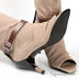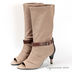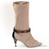 Оригинальные сапоги-чулки из текстиля. Открытый мысок, небольшой каблук, подошва без протекции, украшены декоративным, регулируемым кожаным ремешком.