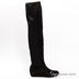 Высокие сапоги-ботфорты из натуральной замши. Полукруглый мысок, подошва с низкой протекцией. По бокам вставки из гладкой кожи.