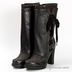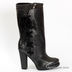 Оригинальные сапоги из глянцевой кожи с текстильными вставками. Толстый устойчивый каблук, подошва "манка", платформа со средним профилем, сбоку декоративная шнуровка, застегиваются на молнию.