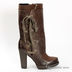 Оригинальные сапоги из глянцевой кожи с текстильными вставками. Толстый устойчивый каблук, подошва "манка", платформа со средним профилем, сбоку декоративная шнуровка, застегиваются на молнию.