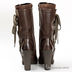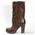 Оригинальные сапоги из глянцевой кожи с текстильными вставками. Толстый устойчивый каблук, подошва "манка", платформа со средним профилем, сбоку декоративная шнуровка, застегиваются на молнию.