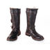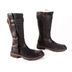 Сапоги высокие из коричневой кожи интересной фактуры на толстой подошве с молнией и пряжками