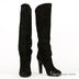 Сапоги женские из натуральной мягкой замши. Округлый, слегка заостренный закрытый мысок. Тонкая подошва черного цвета соединена с изделием клеевым способом крепления. Высокий устойчивый каблук черного цвета с набойкой. Подкладка из кожи.