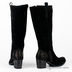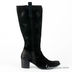 Классические сапоги. Небольшой каблук, устойчивая подошва, сбоку застегиваются на молнию, украшены перламутровыми бусинами.