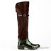 Оригинальные резиновые сапоги-ботфорты. Верх выполнен из мягкой велюровой ткани, небольшой каблук, устойчивая подошва, украшены ремешком.