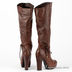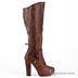 Стильные сапоги из фактурной искусственной кожи. Толстый устойчивый каблук, небольшая платформа, сбоку застегиваются на молнию, украшены декоративными шнурками.
