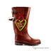 Оригинальные и стильные женские резиновые сапоги. Благородный коричневый цвет позволит им органично вписаться в гардероб любой модницы. Рисунок в виде лент и сердечка на боках, на фоне имитации дощатой стены освежит и оживит ваш образ. Эластичная вставка на задней части голенища под ремешком обеспечит идеальную посадку. Невысокий каблук оптимален для стопы. Высококачественная резина не пропускает воду, а подкладка и стелька из ткани обеспечат комфорт ногам. Особая подошва, запатентованная Giesswein в 1999 году, и до сих пор не имеющая конкурентов, дарит не только удобство, но и безопасность: она не скользит на любой поверхности.