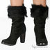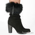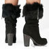 Зимние сапоги из натуральной замши. Внутри отделка - мех по всей длине сапога. Устойчивый каблук и нескользящая резиновая подошва. Декоративный отворот, отделанный мехом.