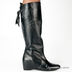 Женские демисезонные сапоги из натуральной кожи. Скрытая платформа. Внутри отделка - кожа. С внутренней стороны голенища короткая молния. Сзади на голенище небольшой отворот, декоративный элемент в виде узелка.