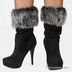 Зимние сапоги из натуральной замши. Высокий каблук. Платформа. Внутри отделка из искусственного меха. Резиновая подошва. Декоративный отворот отделан искусственным мехом.