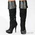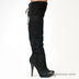 Женские сапоги-ботфорты, демисезонные из натуральной кожи. Округлый, слегка заостренный мысок. Сверху отворот с декоративной шнуровкой. Небольшая платформа, каблук шпилька с фактурным рисунком. С внутренней стороны короткая застежка-молния. Снаружи выделка -замша, мыс кожаный, внутри выделка - кожа.