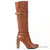 Классические сапоги из гладкой кожи. На высоком устойчивом каблуке, подошва с высокой протекцией. Сбоку застегиваются на молнию. Украшены бронзовыми кнопками.