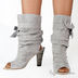 Замшевые демисезонные сапоги. Мыс и пятка открыты, голенище собрано и перетянуто бантом. Устойчивый каблук. Жесткая подошва.
