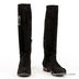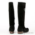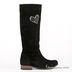 Сапоги женские из натуральной замши. Округлый мысок. Застежка молния. Тонкая литая подошва черного цвета с протектором соединена с изделием клеевым способом крепления. Низкий устойчивый каблук серого цвета без набойки. Подкладка и стелька выполнены из натуральной кожи и байки. Сбоку изделия аппликация фигурными стразами черного и белого цвета, «сердце»