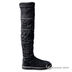 Вязаные сапоги из хлопковой пряжи. Замысловатый узор вязки украшает ноги. Длина варьируется – а это редкая и удачная возможность для сапог. Можете поднять их выше колена, можете спустить на икры – экспериментируйте.  Легкая подошва из искусственного материала не скользит, и делает обувь очень удобной в носке. Пятка укреплена замшей. Благородный цвет антрацита дает широкие возможности для сочетания с другими предметами  гардероба.