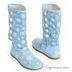 Эта пара создана для молодых, смелых, оригинальных леди! В такой обуви привлечь внимание не составит труда. Сапоги торговой марки с мировым именем UGG Australia выполнены из текстиля голубого цвета, имитирующего светлый деним. Голенище декорировано белыми крупными пуговицами, на рельефной подошве и заднике можно заметить логотип компании производителя. Изнутри сапоги отделаны текстилем, что обеспечивает удобство при носке.
