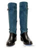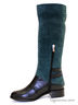 Ботфорты Klimini выполнены из комбинации натуральной кожи черного цвета и нубука с принтом "рептилии" темно-бирюзового цвета.Детали: удобная колодка, укороченная молния для удобства одевания,декоративные ремешки с фарнитурой.Внутри-байка и натуральный мех,которые обеспечат Вам комфорт и тепло при носке этой обуви.Высота каблука ок3см. Высота голенища 38см.Объем голенища 40см.Подошва тунит.Рекомендуем подбирать обувь размер в размер.Произведено в Турции.