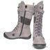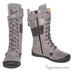 Стильные сапожки из серой кожи с золотым отливом. Сбоку застегиваются на молнию. Спереди декоративная шнуровка и цветочки.
