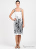 Детали: топ выполнен резинкой с отделкой рюшей по верху, лямки средней толщины выполнены с завязкой, свободная юбка, оригинальная расцветка.