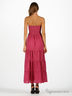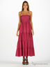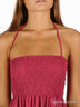 Длинный сарафан с тонкой лямкой-петлёй. Лиф состоит из многорядной резинки. Юбка-клёш.