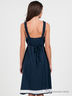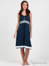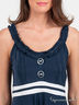 Детали: бретели и окантовка выреза дополнены рюшами; отрезной лиф; спинка усилена резинкой; застегивается на две пуговицы; тонкий пристроченный поясок; контрастные вставки
