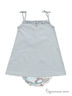 Замечательный сарафан на бретельках с завязками, модель идет в комплекте с трусиками. Застежка сзади на 3 пуговицы. Классический вариант будет хорошим дополнением гардероба маленькой модницы. Горловина сарафана украшена небольшой рюшей, трусики имеют рюши и эластичную резинку.