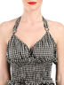 Детали: широкий втачной пояс на многорядной резинке; завязывается через шею; оригинальный принт