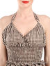 Детали: широкий втачной пояс на многорядной резинке; завязывается через шею; оригинальный принт