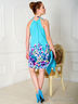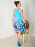 Детали: одна тонкая лямка через шею на завязках, небольшая сборка по вырезу, оригинальный принт.