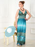 Детали: тонкие бретели, отрезной лиф с формованными чашечками, небольшая сборка по шву, длинная юбка в пол, оригинальная расцветка.