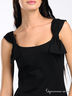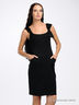 Сарафан расклешенного кроя из трикотажа. Широкие бретельки собраны у основания в бант. На передней полочке 2 кармана. Сзади застегивается на незаметную молнию.