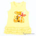 Летний сарафан для девочки желтого цвета. Низ изделия дополнен многослойными оборками. На полочке аппликация со стразами.