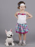 Сарафан на тонких бретелях, с заниженной талией. Верхняя часть выполнена из гладкого трикотажа, двухслойная юбка собрана на резинку. Украшен цветками и лентами.