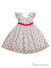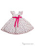 Легкий летний сарафан с полукруглым вырезом и рукавами крылышками. Пояс выполнен из узкой атласной ленты, украшенной стразами. Застежка на пуговицы. Декоративный принт понравится маленькой сладкоежке.