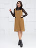 Игра базы и трендов. Стилисты советуют иметь универсальную основу и акцентные модели. Сарафан в оттенке Золото с квадратным вырезом. Посмотрите: как он интересно смотрится с белой блузой. В нем вы светитесь!