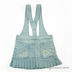 Детали: спереди втачные карманы, низ изделия расклешен, сарафан украшен нашивкой и стразами.