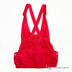 Детали: широкие лямка застегиваются на пуговицы, к поясу пришиты шлевки для ремня, по бокам удобные открытые карманы, низ изделия с вставкой из эластичной резинки, полочка украшена стразами.