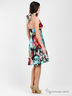 Красочный сарафан из тонкой, струящейся, шелковой, атласной ткани. V-образный вырез горловины с запахом. Отрезной лиф с бретелями, завязывающимися на шее. Шов лифа дополнен резинкой. Присборенная на резинках спинка. Стильный летний вариант для создания романтического образа.