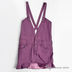 Модель прямого кроя. Длина перекрестных лямок регулируется пуговицами на полочке. Застегивается на пуговицу и молнию. К поясу пришиыт петли для ремня. Три передних кармана, два задних кармана. К подолу пришиты оборка с контрастным подкладом. Декоративная прострочка. Вышивка на задних карманах.