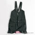 Модель прямого кроя. Длина перекрестных лямок регулируется пуговицами на полочке. Застегивается на пуговицу и молнию. К поясу пришиыт петли для ремня. Три передних кармана, два задних кармана. К подолу пришиты оборка с контрастным подкладом. Декоративная прострочка. Вышивка на задних карманах.