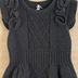 Короткий рукав с декоративными рюшами. Сочетание гладкой и объемной вязки. Линия талии подчеркнута широкой резинкой.