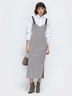 Лаконичный сарафан в клетку на широких регулируемых бретелях с пряжками.