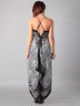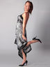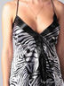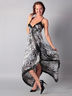 Броский шелковый сарафан на тонких бретелях. Спина открыта, под грудью завязки, длина юбки разная.