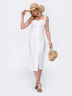 Лаконичный сарафан из коттона с отрезом по линии талии. Модель застёгивается на пуговицы по длине.