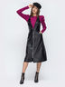 Стильный сарафан из искусственной кожи на узких нерегулируемых бретелях. Застегивается на потайную молнию по спинке. Модель с карманами и двойной декоративной молнией по переду юбки.