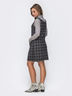 Лаконичный сарафан в клетку из мягкого жаккарда. На полочке предусмотрены накладные карманы. Практичный крой прекрасно подойдет на любой тип фигуры.