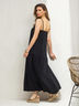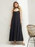 Сарафан-макси свободного кроя с широким воланом по низу. Модель присобрана на резинку по спинке.