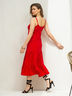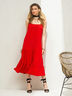 Летний сарафан на узких регулируемых бретелях с двухъярусными воланами по низу.