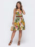 Летний сарафан из принтованного штапеля на завязках. Модель отрезная по талии с декоративными пуговицами на полочке. Для комфортной посадки по фигуре в центральной части спинки вафельная сборка и эластичная деталь в поясе. Ремень в комплект не входит.